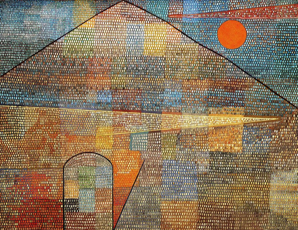 Considering Klee’s initial indecision when it came to choosing a life path between music and the visual arts, it is only natural that the one should, to a degree, transmute into the other, thus finding its voice in colour instead of a music hall.